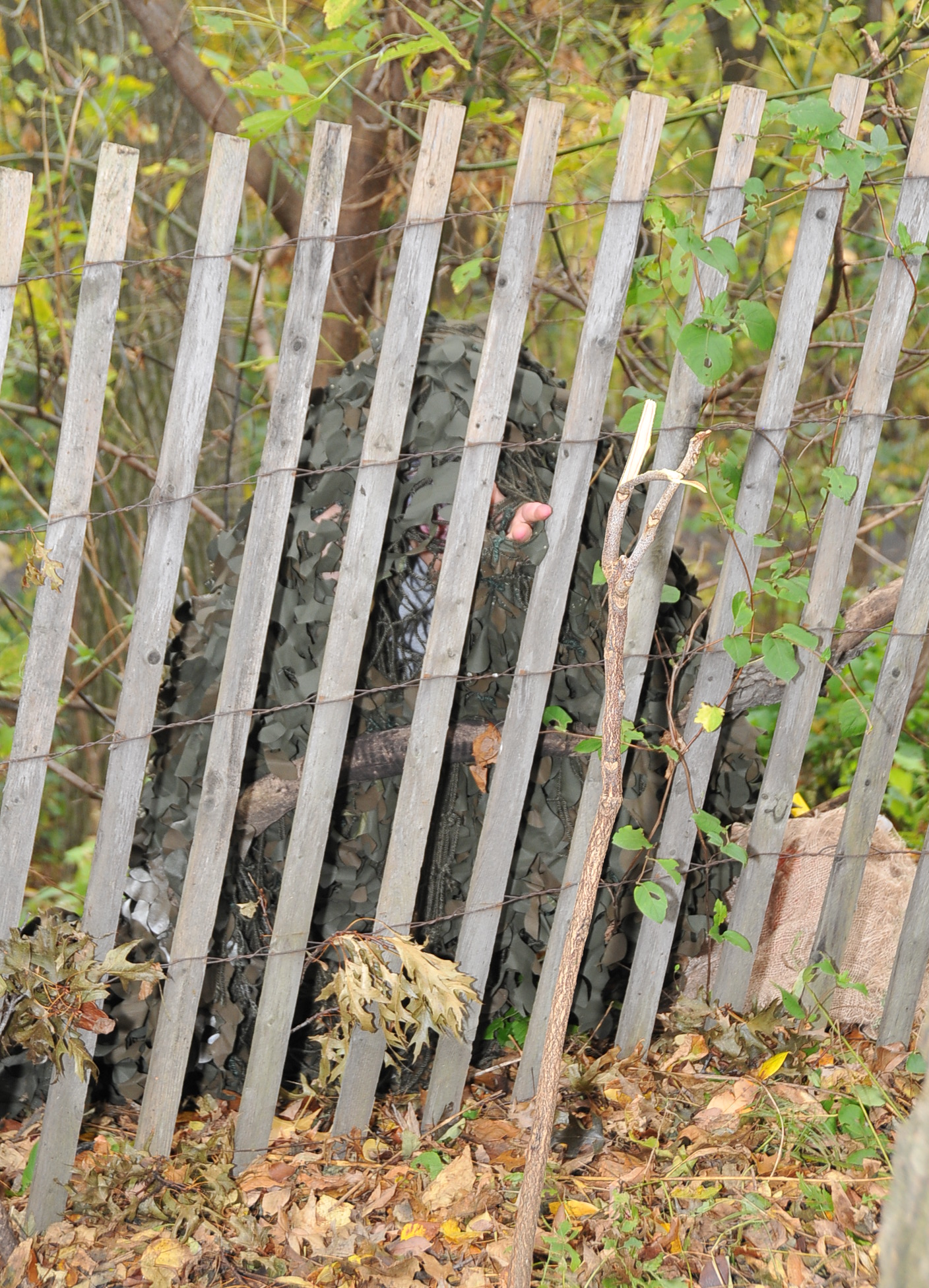 1:00 PM. A zombie in camoflague is hiding.