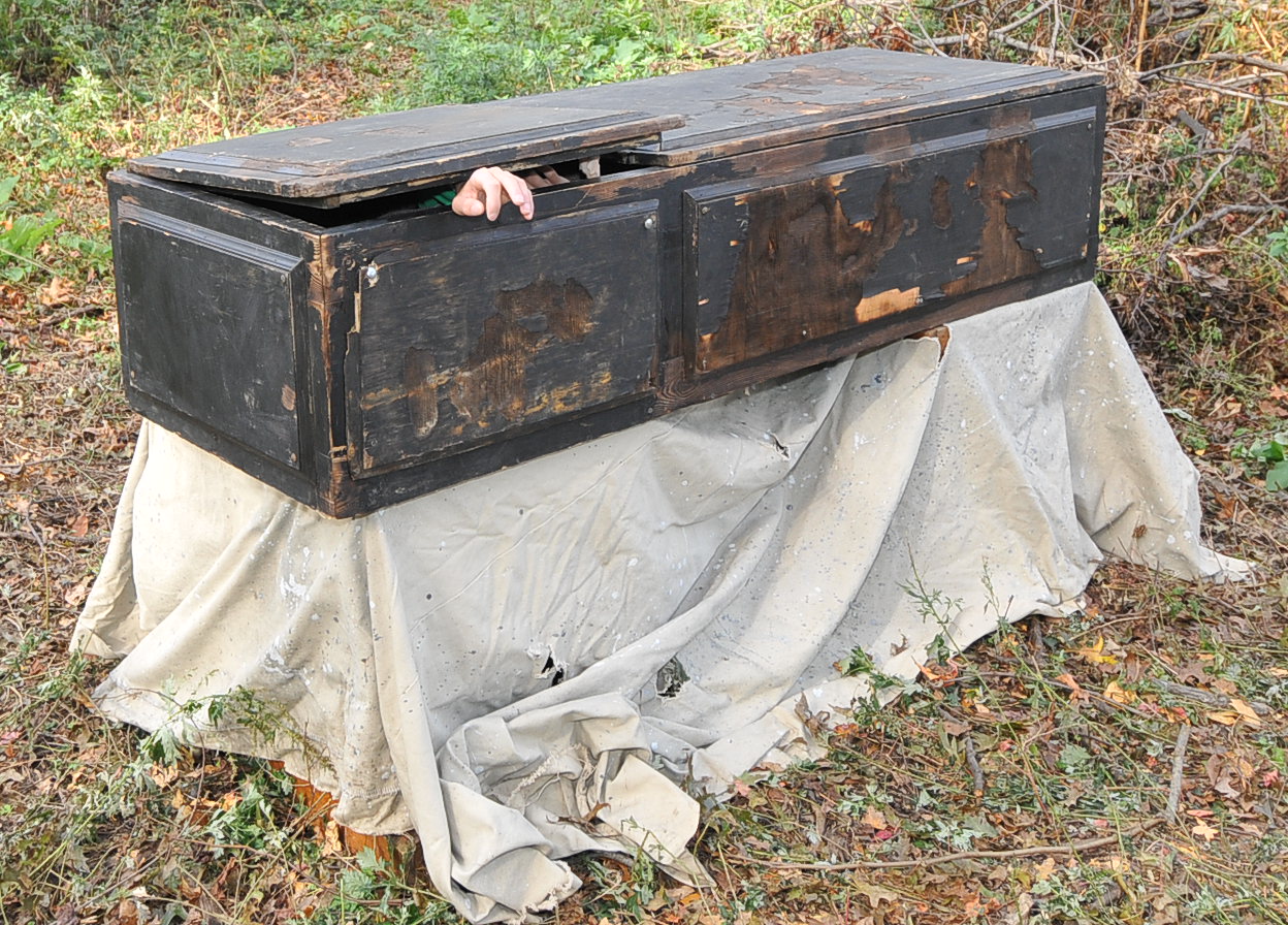 1:41 PM. A coffin with the corpse trying to get out.