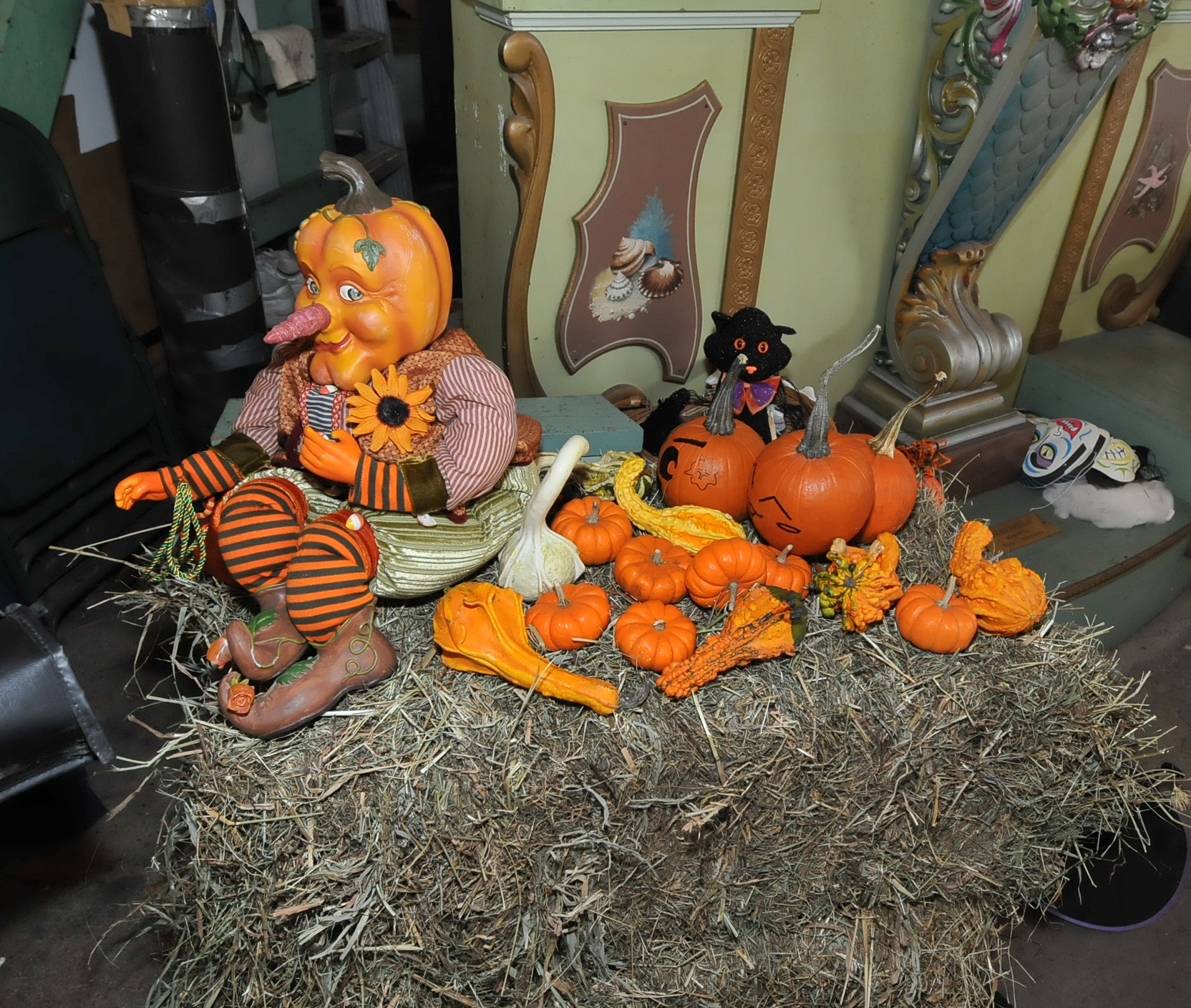2:44 PM. The pumpkin and gourd decorations in the center of the carousel.