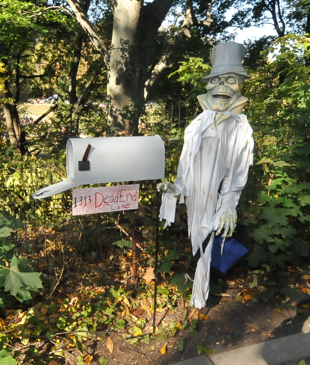 2:38 PM. 1313 Dead End Lane, with a skeleton.